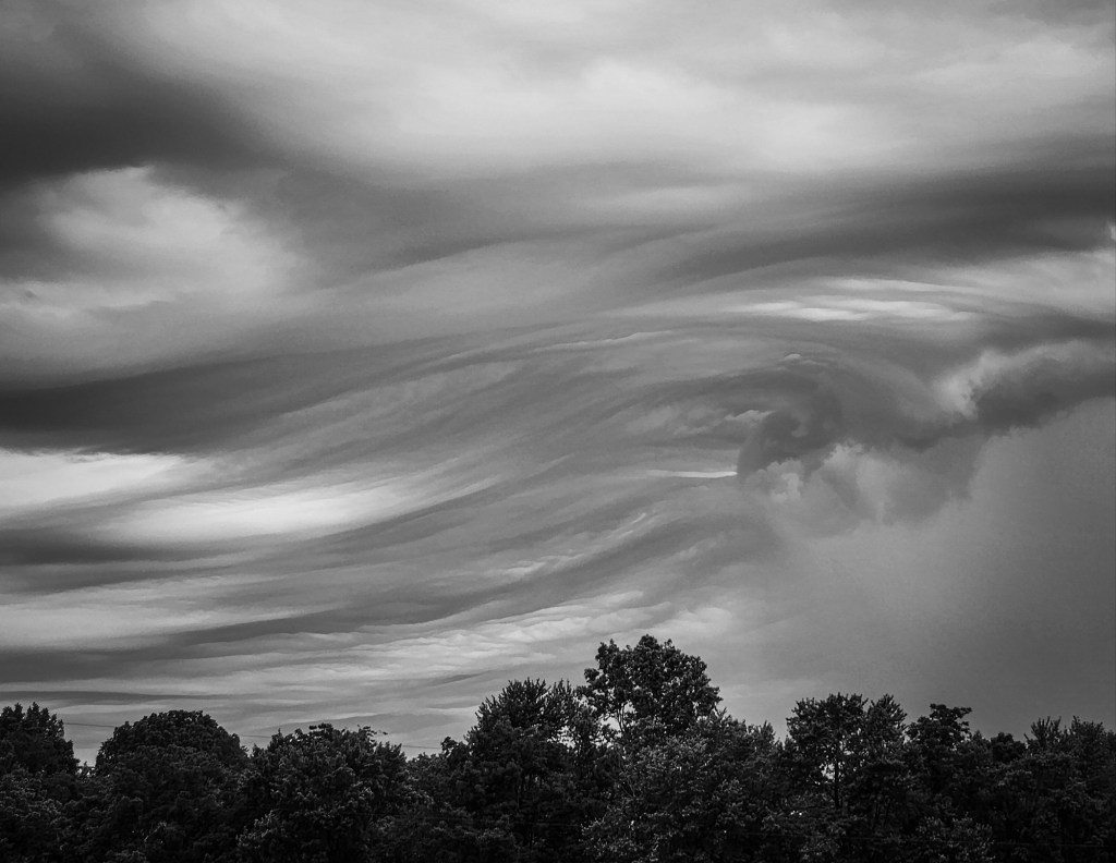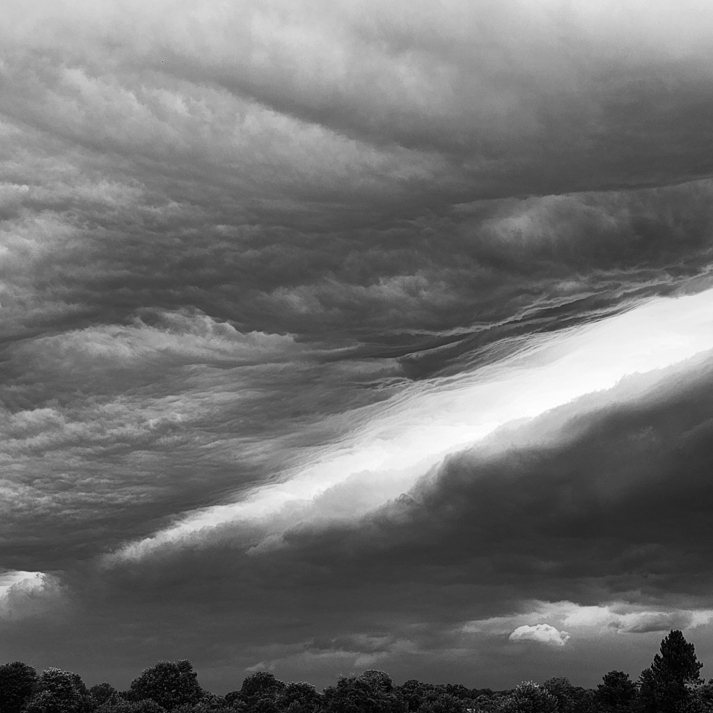 Emerging in an apocalyptic embrace — murky, churning, tinged with menace — rain-cooled air descends, racing ahead of the thunderstorm’s fury. In a violent collision, warmer-moist air lifts skyward, condensing into the brooding shelf cloud. It’s as if heaven has drawn a line, daring anyone to cross...