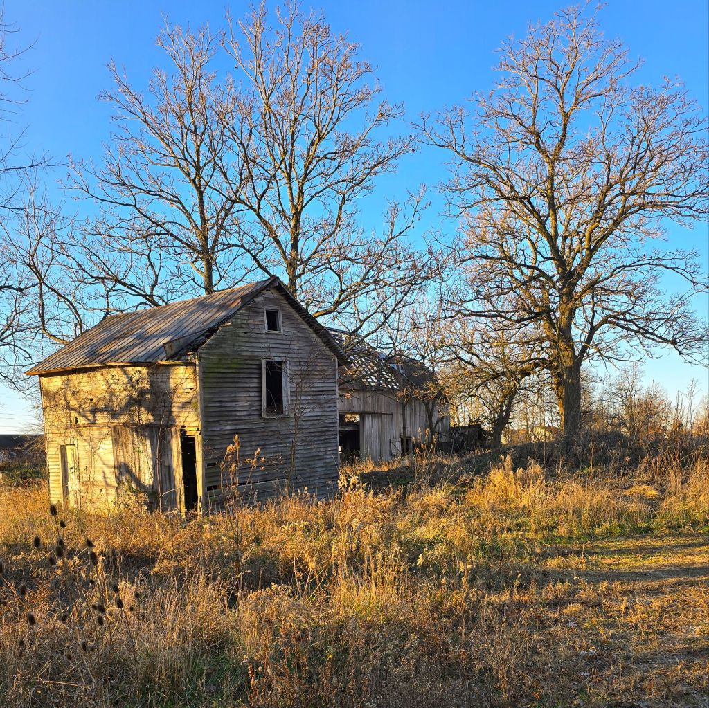 As if trying to awaken the memories held within its weathered walls, dawn embraces the abandoned farm with her tender, golden glow…