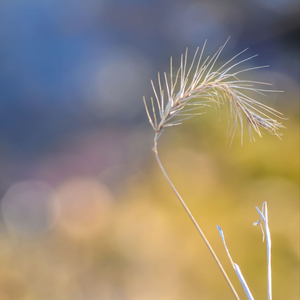 Swaying with delicate grace against a swirling, chaotic haze of colors, she lingers in quiet yearning for spring’s radiant, sun-kissed touch…