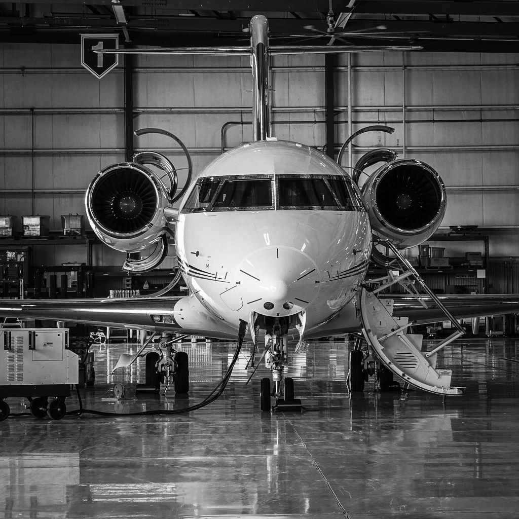 Beneath the hangar glow, she rests—a vision of grace and luxury wrapped in polished aluminum and quiet strength…