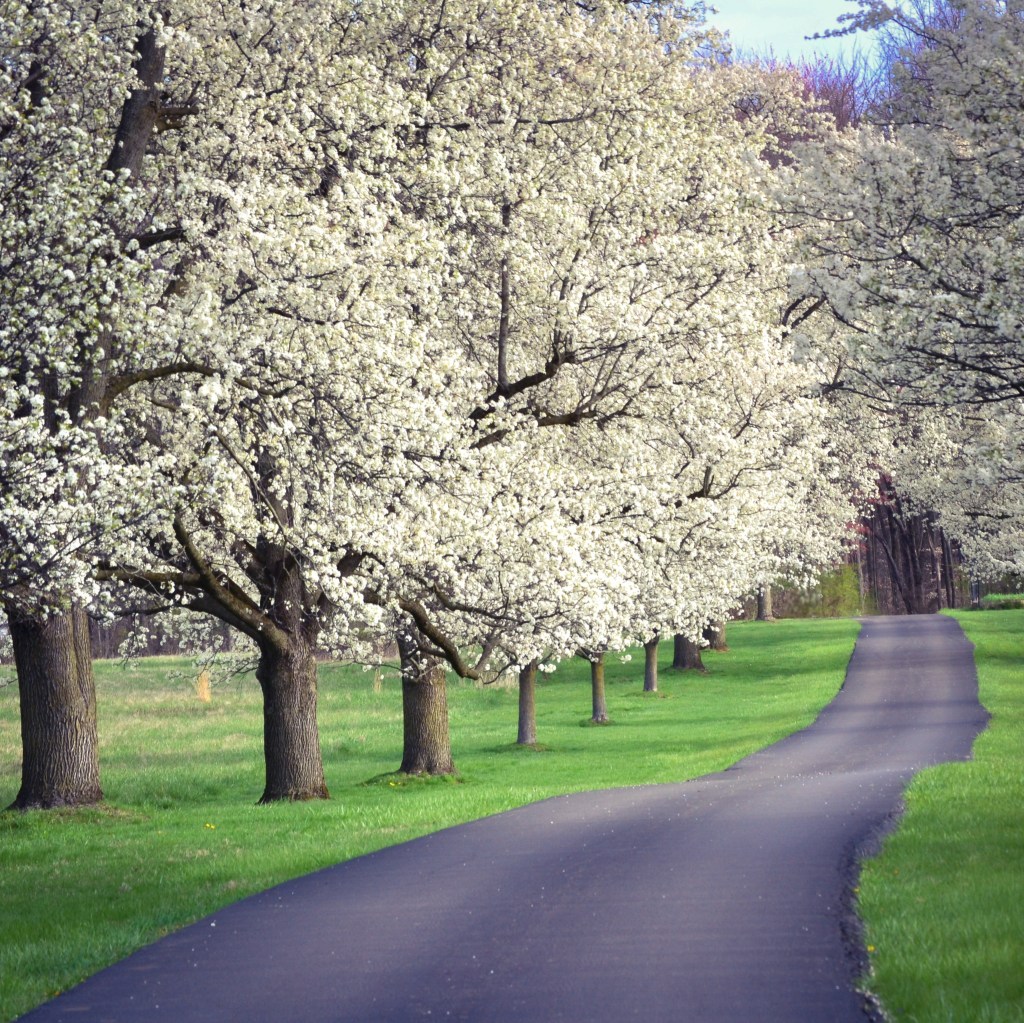 Her blossoms gather on the waking trees, like little clouds stitched softly to the breeze…